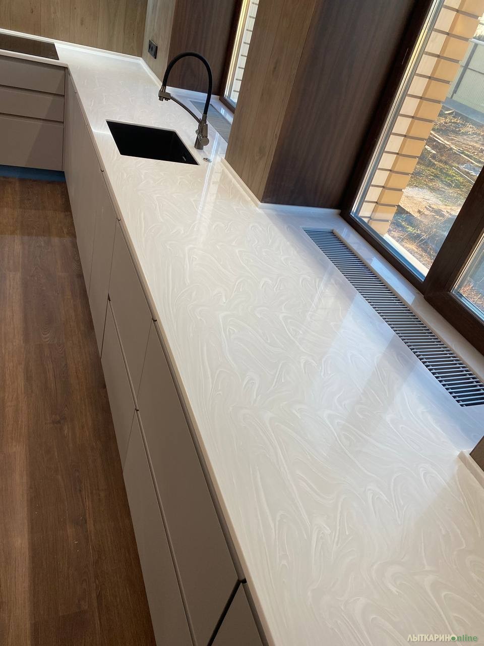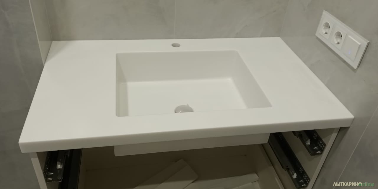 Изготовим столешницу, подоконник, умывальник, барную стойку, ресепшен и др. изделия из акрилового камня. Цена указана за 1 кв.м. изделия в белом однотонном цвете (Южная Корея).