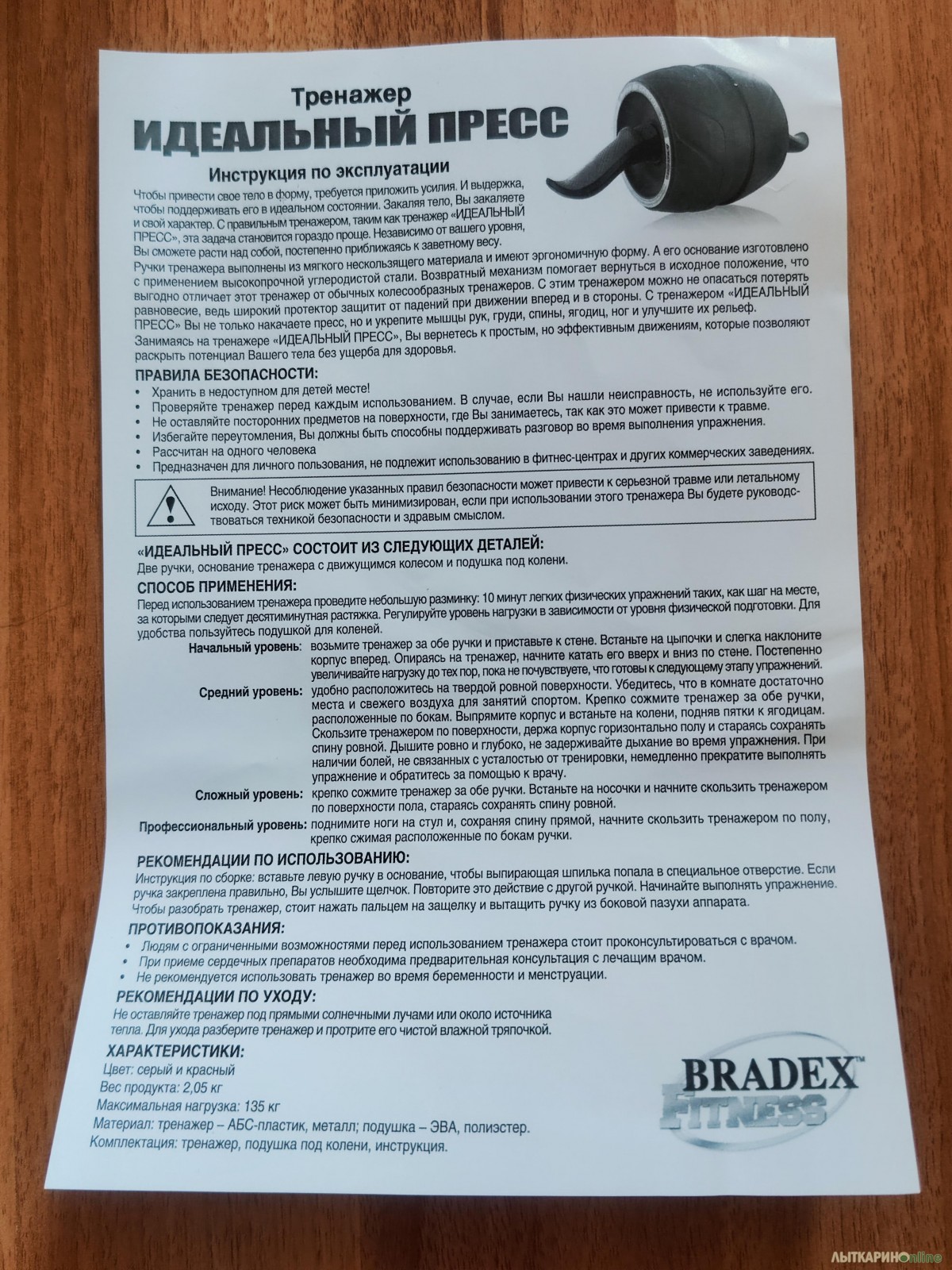 Пользователь может самостоятельно регулировать нагрузку. Гладкая поверхность ролика не оставляет царапин на напольном покрытии любого типа. Рукоятки тренажера имеют эргономичную форму и нескользящее покрытие. Это обеспечивает удобство и безопасность эксплуатации, а также существенно снижает утомляемость в процессе непрерывного длительного занятия. В комплекте с тренажером Bradex «Идеальный пресс» (SF 0063) поставляется специальная мягкая подушка для коленей. За счет этого для выполнения упражнений не требуется дополнительный коврик.