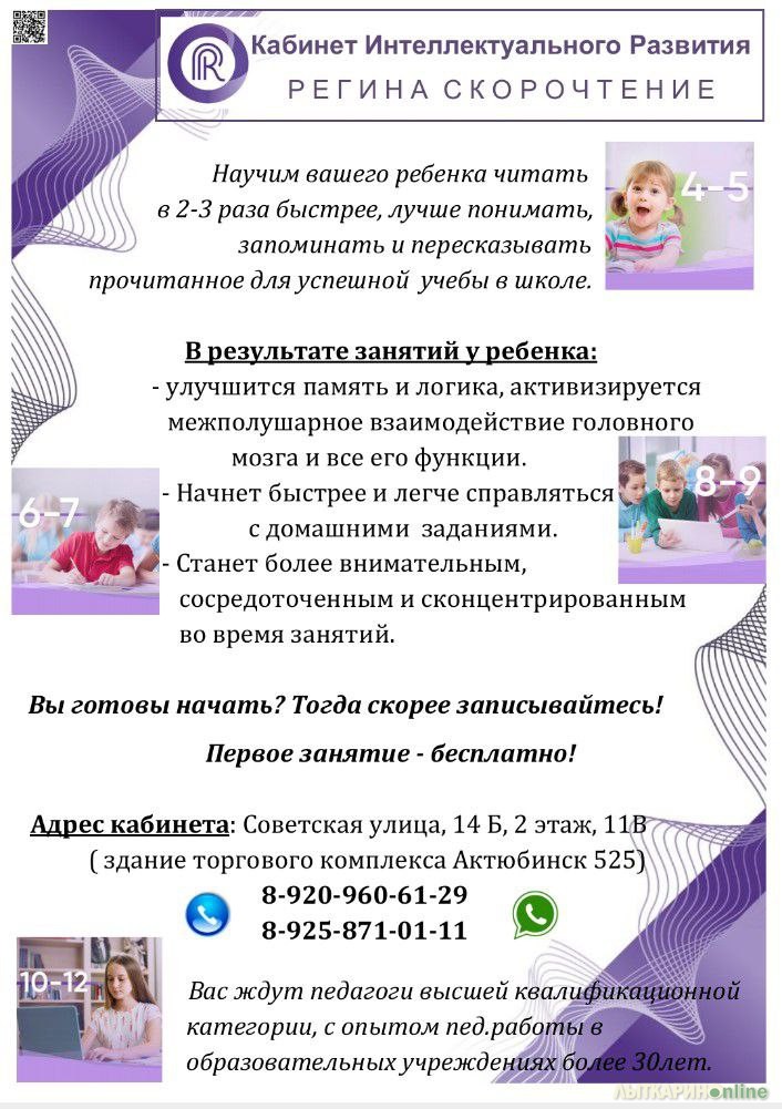 Теперь в Лыткарино! Работаем по авторской методике Регины Лукмановой - психолога, эксперта в области работы мозга. Научим читать вашего ребёнка в 2-3 раза быстрее. Индивидуальные занятия и группы 2-4 чел. Практикующие опытные педагоги высшей квалификационной категории. Коррекционные занятия по работе со школьными трудностями