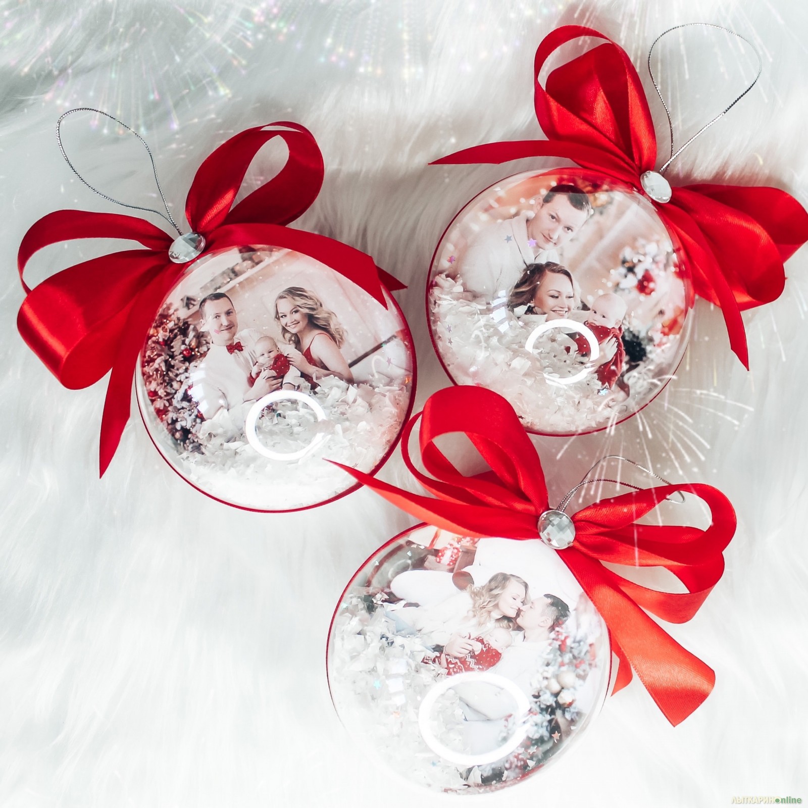 Елочные прозрачные шары с Вашими фотографиями станут чудесным Новогодним подарком и прекрасным украшением на ёлку для ваших близких и родных.✨ В базовую комплектацию входит двухсторонний шар с вашими фотографиями,яркие красные банты со стразами,блестящий искусственный снег внутри .Каждый шар упакован в подарочную упаковку. Диаметр шара 10 см.