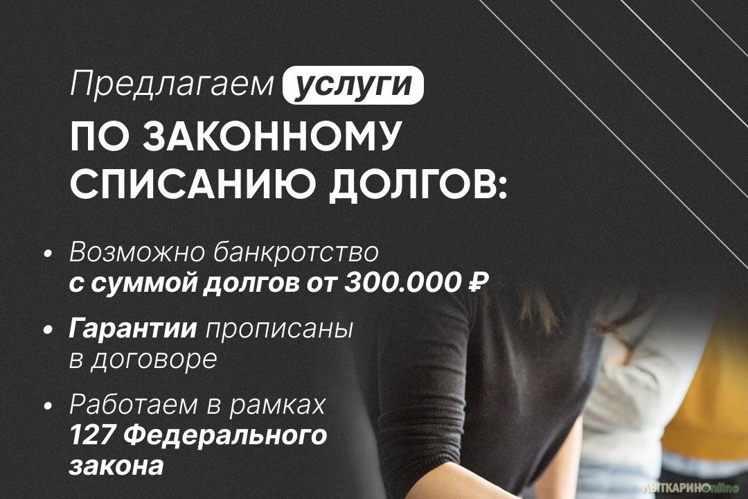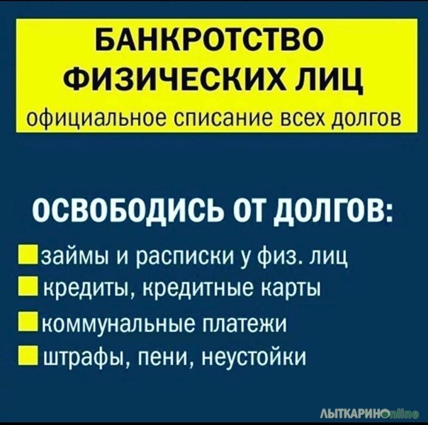 Поможем списать все долги по ст. 127 ФЗ физическим лицам на 100%. В жизни случается разное: кризис, потеря работы или бизнеса. Отсюда — невозможность оплачивать счета или выполнять обязательства по кредитам. Бывает, что лучший выход из ситуации — банкротство. Банкротство — это законное списание долгов через суд, если взыскать их невозможно.Действие закона о банкротстве распространяется на все долги, которые есть у гражданина: кредиты, налоги, коммунальные платежи и т. д., кроме задолженности по алиментам и возмещения ущерба, нанесённого жизни и здоровью другого человека. Процедуру банкротства можно пройти, если доход не позволяет в срок платить по кредитам и в ближайшее время финансовое положение не изменится. Сделаем всё законно. Сохраним прожиточный минимум. Работаем по Договору. Рассрочка платежей за услуги. Всё индивидуально по недвижимому и движимому имуществу - сохранение. Консультация бесплатно.