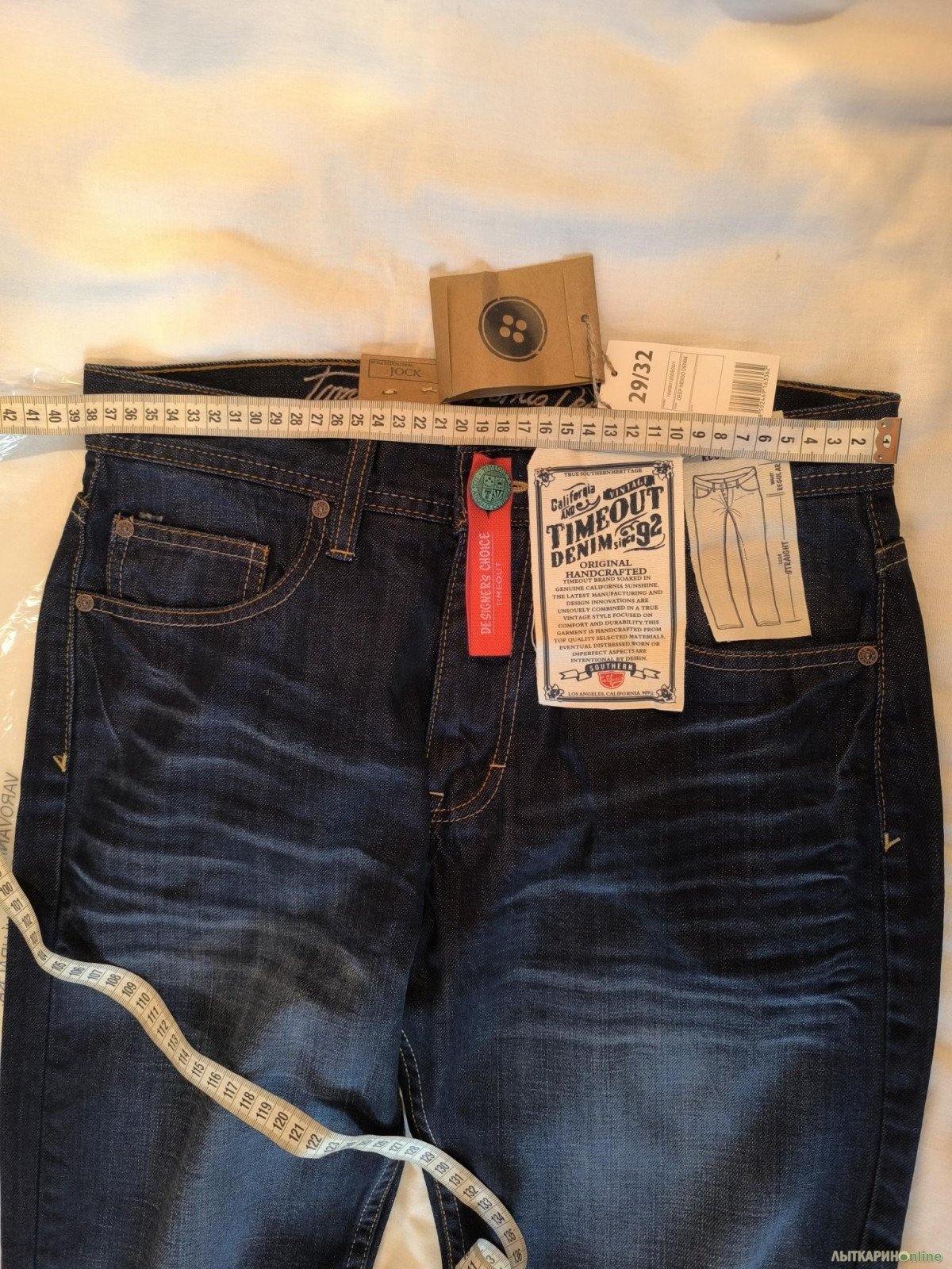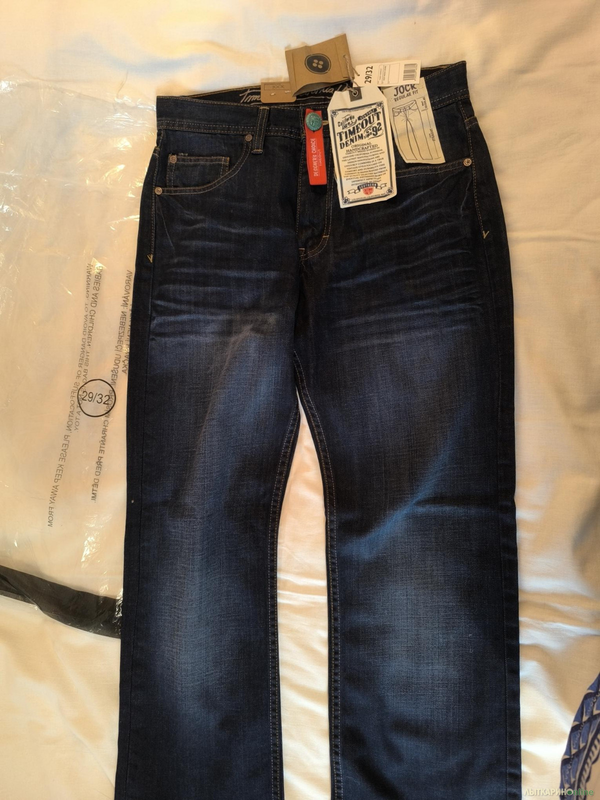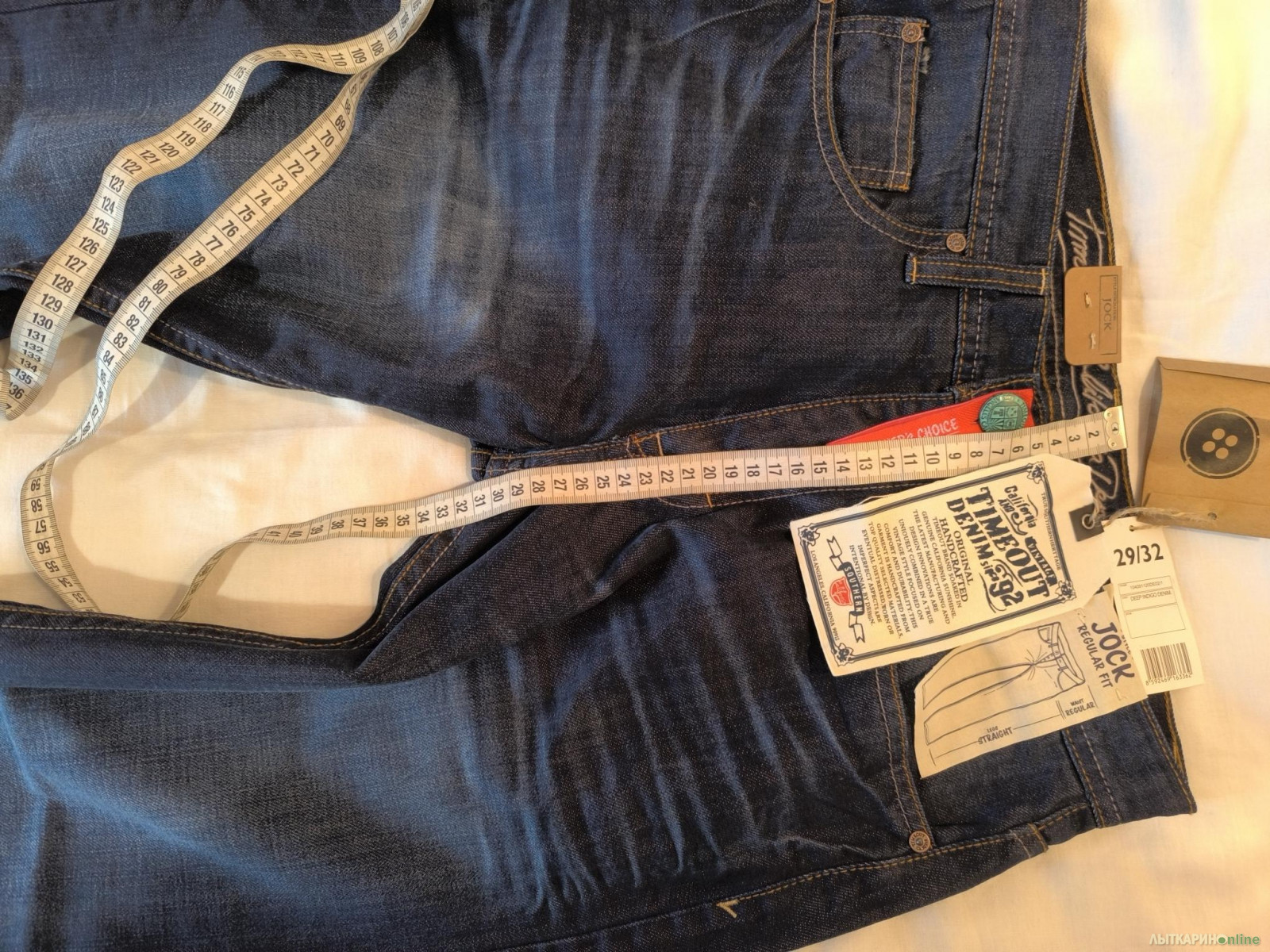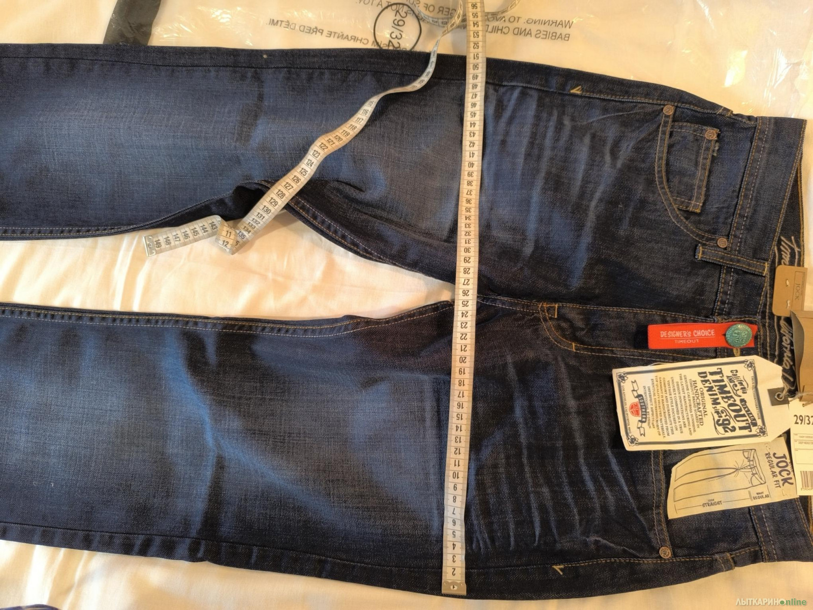 Продаю мужские джинсы чешской фирмы TimeOut. Отличное качество. Все лейблы и бирки на месте. Размер 29, рост 32. Длина по боковому шву 105, ПОТ по поясу 38, ПОБ 51, высота шагового шва 31, ширина штанины внизу 22.