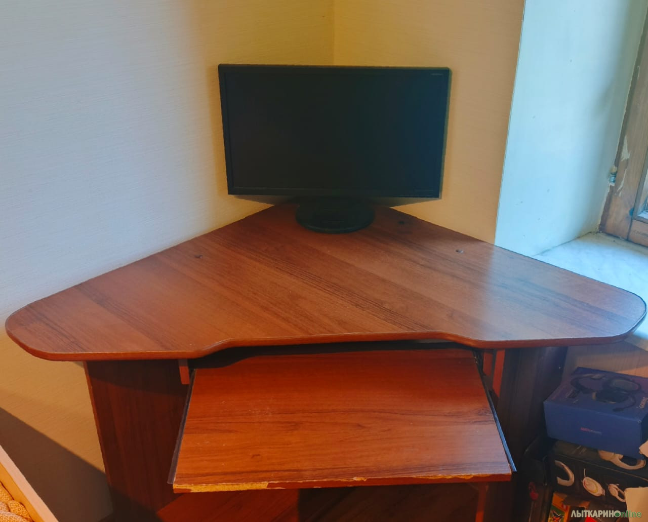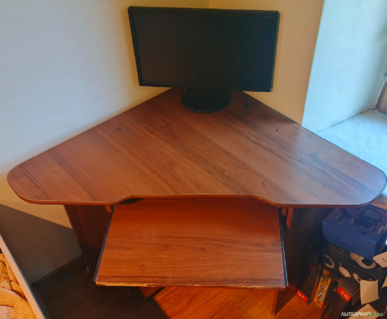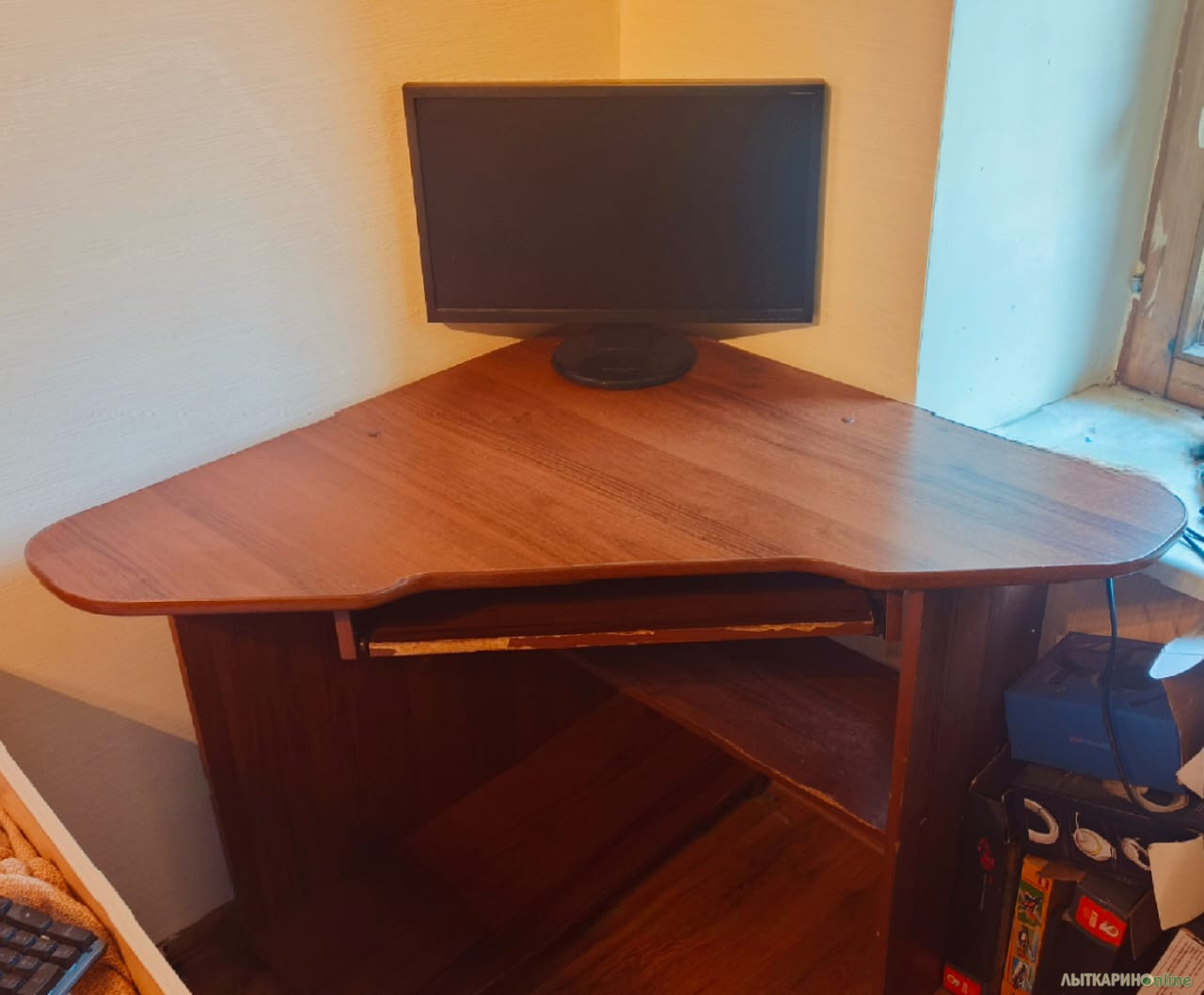 Очень удобный , компактный угловой стол. Размеры Ширина 90 Длина 90 Диагональ 120 Высота выдвижной полки 10 Высота средней полки (до поверхности стола) 40 Высота нижней полки над полом 7 Общая высота 75 Стол в разобранном состоянии Продается без монитора ))