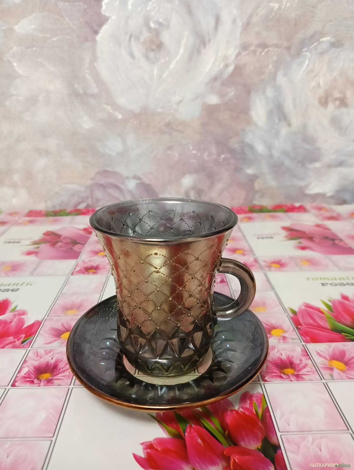Новые кофейные пары из цветного стекла с рельефным декором и золотым напылением «Черное золото». 6 пар, 12 предметов (продаю как вместе, так и по отдельности). Цена за пару -180р. Или за все -900р.