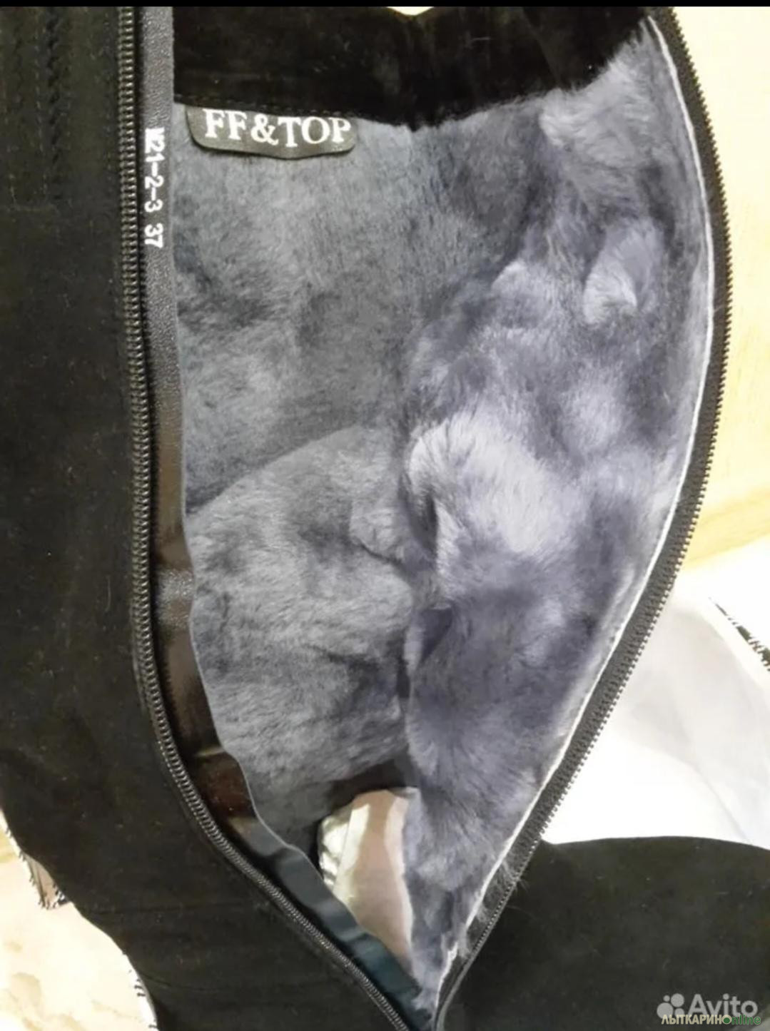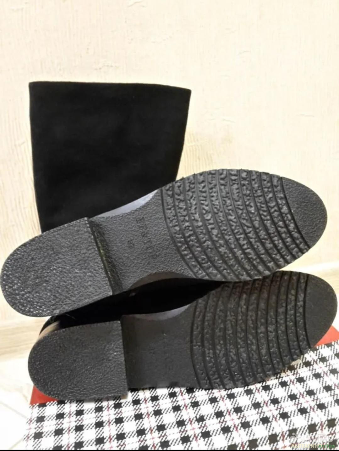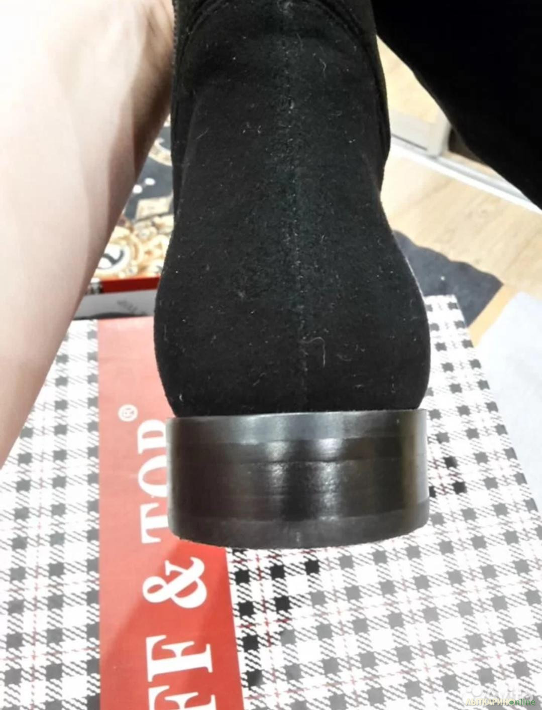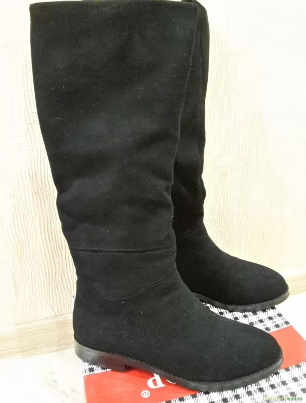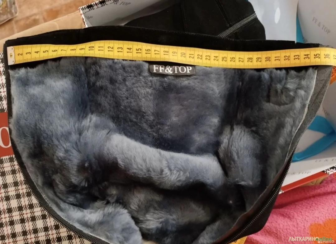 Новые Сапоги зимние натуральная замша/натуральный мех FF&TOP. Замша спилок очень хороший, мелкий, не рыхлый. Абсолютно новые. Стелька 24,5 см. Голенище размер внутренний - верх 35 см, тянется с резинкой до 39 легко. В щиколотке 25-26см.