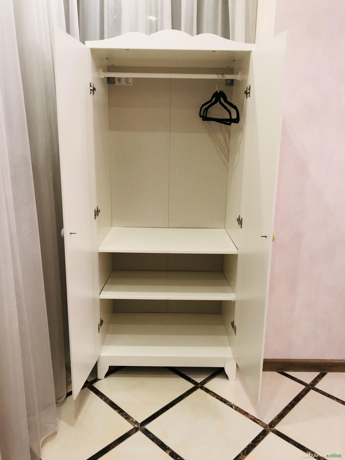 Белый, из дерева. В отличном состоянии, без царапин. Высота 174, ширина 75, глубина 50. Подойдет как в детскую, так и в спальню.