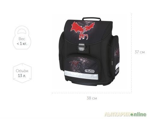 Яркий и оригинальный ранец, который понравится активным и непоседливым мальчишкам. Ранец Midi Plus Red Dragon выполнен в не марких тонах и украшен оригинальными принтами. Ранец имеет крышку, которая надежно закрывает содержимое. Внутри ранец имеет два независимых отделения, которые разделены мягкой перегородкой. Верхняя крышка застегивается на надежный замок. Ранец имеет три вместительных внешних кармана. Карманы застегиваются на молнию. Изнутри крышки предусмотрено специальное место для указания личных данных ребенка и контактной информации. В верхней части ранец имеет удобную ручку-петлю для переноски в руках. Рюкзак имеет жесткое пластиковое дно, которое защищает содержимое от влаги. Лямки выполнены из вспененного материала и очень удобно сидят на плечах. Они легко и удобно регулируются по длине. Преимущества серии Herlitz Midi Herlitz Midi оптимальный выбор для худых или невысоких детей, вес ранца < 1 кг Эргономичная форма спинки с оббивкой из мягкой дышащей ткани Регулируемые плечевые лямки Защелкивающийся замок со светоотражателем Светоотражающие полоски из материала 3M Scotchlite™ для безопасности ребенка в темное время Прочное и устойчивое дно Просторные карманы с лицевой и боковых сторон ранца Водонепроницаемое покрытие и уплотненное дно надежно защитят содержимое ранца от промокания Ранец изготовлен из высококачественных материалов с учетом самых строгих требований по безопасности Соответствует немецкому стандарту качества DIN 58124 Производитель гарантирует отсутствие азокрасителей, кадмия, пентахлорфенолов, пластификаторов и вызывающих аллергию красителей. Ранец Herlitz Ранец Midi Red Dragon Код товара: 116717 Модель: 116718 Артикул: Her-Ранец Midi Red Dragon ВЫБОР ЦВЕТА Черный Свойства Производитель: Herlitzbags Возраст: С 1-го класса Эргономика: эргономичный ранец с мягкой дышащей оббивкой спинки Спинка: Ортопедическая спинка Вес: 1 кг. Объём: 13 л. Размер: 38 x 37 x 22 см. Дно: Плотное устойчивое дно Особенности: Оптимальный выбор для невысоких или худых детей Страна производства: Германия