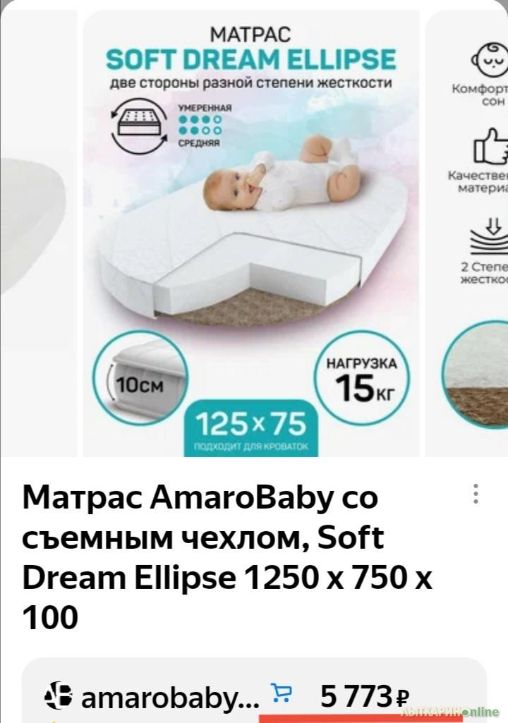 Матрас ортопедический в детскую кроватку,овальный,размер-125×75×10,двухсторонний,новый (неделя),ф.AmaroBaby Soft Dream Ellipse: