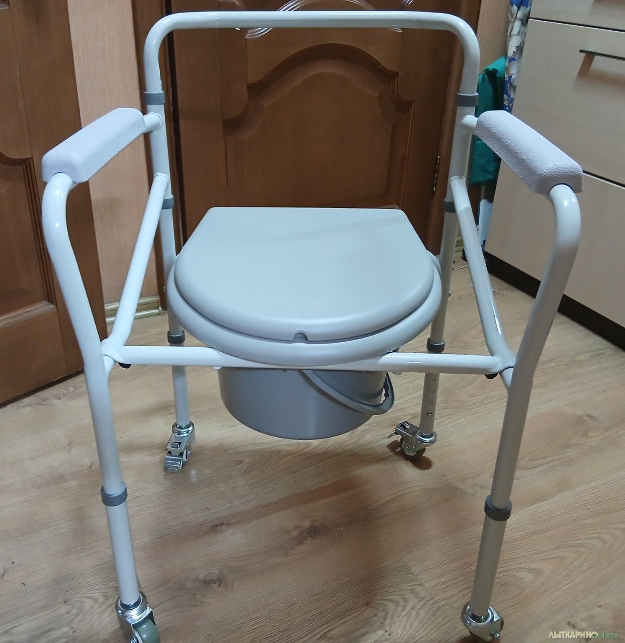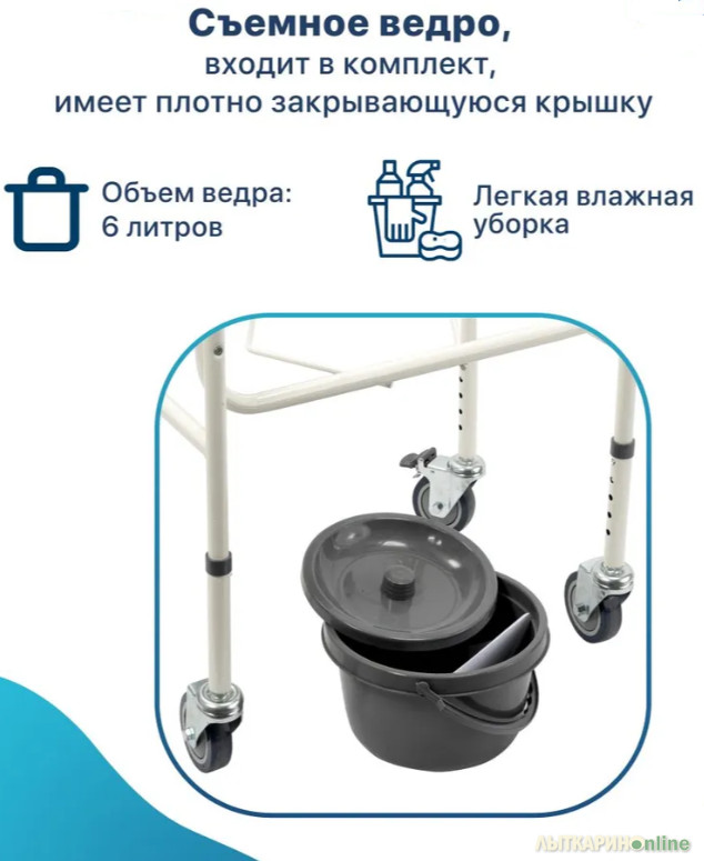 Продается НОВЫЙ В УПАКОВКЕ кресло-туалет с санитарным оснащением с колесами складной СМ Спутник — идеальный выбор для обеспечения комфорта и безопасности взрослых, пожилых людей и инвалидов. Этот санитарный стул является практичным решением для людей с ограниченной подвижностью, позволяя им самостоятельно справляться с личной гигиеной. Высота кресла -туалета регулируется, что делает его подходящим для пользователей разного роста и с различными потребностями. Благодаря своей функциональности это кресло станет незаменимым помощником в повседневной жизни. Ножки туалета для людей с ограниченными возможностями оборудованы самоориентирующимися колесами с тормозами, что позволит легко перемещать изделие. Кресло-туалет СМ Спутник обладает стальной конструкцией. Модель оснащена съемным ведром с крышкой и мягкими подлокотниками. Широкий кресло-туалет предназначен для людей с избыточным весом. Максимальная нагрузка, которую выдерживает кресло-туалет для инвалидов и пожилых, составляет 180 кг. Характеристики: Регулировка по высоте: 65-75 см, Максимальная нагрузка: 180 кг, Съемное ведро с крышкой, Материал: сталь, Тип рамы: разборная, Высота от пола до сиденья: 41-51 см, Расстояние между поручнями: 55 см, Диаметр колес: 10 см, Размеры: 65x43x65-75 см, Вес: 7 кг.